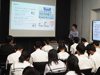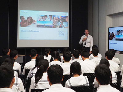 | Event Outline | In recent years, Japanese high schools have tried to motivate their students by doing more to introduce students to Japanese businesspersons working overseas by arranging meetings and office visits with these individuals. In support of the program objectives of Nippon Travel Agency, which arranges high school field trips, Olympus Singapore has agreed to give students opportunities to learn about the life of corporate expats, including workplace environments, overseas work-readiness, and the pros and cons of working overseas. Japanese expats from multiple departments at Olympus Singapore recently made themselves available to discuss their experiences and answer questions. The students were also briefed on Olympus' products and allowed to operate some of the products hands-on to better understand Olympus' workplaces. <Olympus Singapore Company Visit Programs> 1. Company Introduction 2. Welcome Message from the Managing Director of Olympus Singapore 3. Job Introduction of Japanese Expats 4. Olympus Products Hands-on Experiences 5. Photo Session |