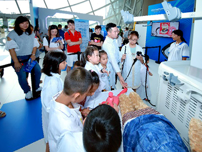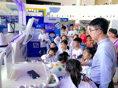 | Event Outline | Olympus started to hold the Olympus Optical Technology Tour in China since 2014. This year the Olympus Optical Technology Tour has started in Guangdong Science Center in Guangzhou, during which a section called WE ARE DOCTORS was arranged for teenagers, with Olympus products hands-on experience and intestinal and gastric health knowledge. In this section, teenagers can act as doctors, using endoscopy to help the "patient" (a toy bear) cure his disease, while in the meantime, get medical knowledge. Besides medical experience activity, a CAREER DREAM WALL was also set, inspiring their future career choices after experiencing the equipment of all Olympus business groups. Teenagers can vote for their dream job on a sticker with their name on it. Scientist and doctor were the most popular careers. In total 255 teenagers participated in WE ARE DOCTORS, 515 stickers were posted on the CAREER DREAM WALL. Another activities are to be held in Beijing/August and Shanghai/September this year. |