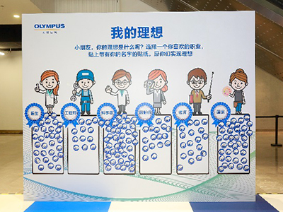 | Event Outline | Olympus started to hold the Olympus Optical Technology Tour in China since 2014. This year the Olympus Optical Technology Tour has held in China Soong Ching Ling Science & Culture Center for Young People in Beijing, during which a section called WE ARE DOCTORS was arranged for teenagers, with Olympus products hands-on experience and intestinal and gastric health knowledge. In this section, teenagers can act as doctors, using endoscopy to help the "patient" (a toy bear) cure his disease, while in the meantime, get medical knowledge. Besides medical experience activity, a CAREER DREAM WALL was also set, inspiring their future career choices after experiencing the equipment of all Olympus business groups. Teenagers can vote for their dream job on a sticker with their name on it. In total 156 teenagers participated in WE ARE DOCTORS, 219 stickers were posted on the CAREER DREAM WALL. It was also held in Guangzhou, and will be held in Shanghai in September. |
