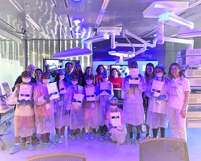 | Event Outline | The Operating Room workshop was organized for the children by the Olympus CSR Committee in Spain, employees from medical systems division as well helping volunteers. The event started with an introduction to operating rooms, how they evolved over time and the children got to know every detail one should know about operating rooms. After the introduction all children had the opportunity to simulate an endoscopy with the Pelvi Trainer (training simulator). They used fruits as test objects to have an impression of how an endoscopy is conducted in a real operating room. On a respective screen the group could check the picture provided by the endoscope in 3D as well as while using the optical technology Narrow Band Imaging (NBI). |