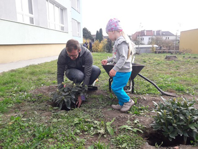 | Event Outline | All participants met at elementary school area and all together planted trees which will serve as education material for biological class. About 22 employees participated, they planted 13 trees and 18 bushes. A Japanese garden was planted there. |
