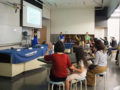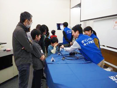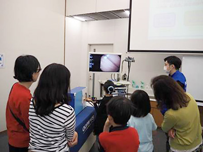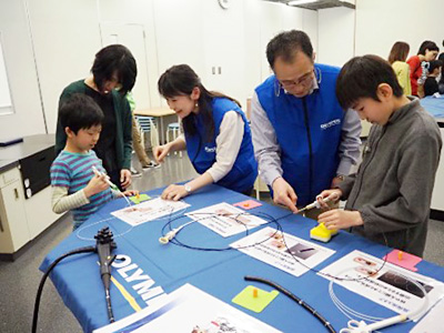 | Event Outline | Olympus held the Endoscope Kids Class "What are Endoscopes?" with the cooperation of the Children's Science Center Hachilab in Shibuya ward. Hachilab is a facility of the Shibuya ward board of education that provides science, technology and mathematics programs that cannot be experienced in school classes, with the aim of fostering scientific thinking way and motivation for manufacturing. Olympus endorses the idea of Hachilab and has held Kids Classes in cooperation with them. On the day of the event, two classes were held and eight parents and children participated in each class. The children raised a big cheer by the medical endoscope hands-on to find polyps in the insertion model and by the treatment tools, used with the endoscope, hands-on to grasp the sponges that looked like lesions. At the last of the class, many children cheerfully raised their hands for the staff's question, "Thank you for joining this Endoscope Kids Class, and then, who did you think to want to become a doctor in the future?" Olympus will continue to provide children opportunities to think about the importance of health and also to discover future dreams in order to realize our corporate philosophy, "Making people's lives healthier, safer and more fulfilling." |