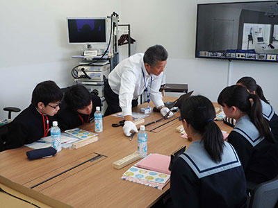 | Event Outline | Olympus accepted a request of company tour from Tomigaya second junior high school in Miyagi prefecture for corporate visiting study (theme: Study about state-of-the-art medical care and medical treatment equipment in Japan) and held the event at the Technology Development Center of Olympus Ishikawa site. After explaining the history of Olympus, a staff supported hands-on experience of medical endoscopes and treatment tools using a gastric insertion model, experience a rigid endoscope, and also answered questions from students. The students commented, "Thanks to kind and detail explanation, it was easy for me to understand the history of Olympus, and I learned what kind of company Olympus is", "I understood how difficult to produce equipment that not only for a doctor to use easily but also for patients to minimizes the burden", "I had a stronger desire to work in the medical care industry in the future." |
