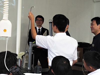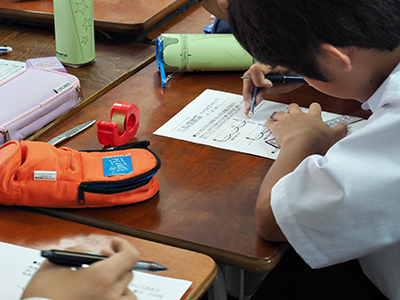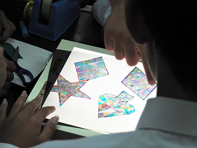 | Event Outline | The Olympus Wakuwaku Project, a volunteer circle mainly consisted of the Olympus group employees, held the 60th Wakuwaku Science Class. At the Hachioji City Yui Junior High School, a total of 185 students (4th grade student and a 2nd grade student) were given classes by 28 volunteer staff who were sharing their roles. The six programs "Kaleidoscopic Work," "Camera Obscula," "Wonder of Color," "Light Illusion," "What is the Endoscope?" and "Micro World" were conducted, and the students learned science with an interest in getting explanations of the principles and doing the work. Above all, in the Camera Obscula program, they created a camera obscula using magnifying glasses, observed it, and drawn the principles of the camera. When the outside scenery was reflected through their camera obscula, the students shouted with joy. |