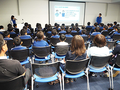 | Event Outline | Olympus accepted a factory tour requested from Matsukawa Elementary School in Fukushima City, and also held the "Endoscope Kids Class". At the factory, children visited the manufacturing process of equipment used as a medical endoscope system. At the Endoscope Kids Class, after learning about the history and roles of endoscopes, they experienced the operation of endoscope systems and treatment tools used with endoscopes. Children enjoyed to learn endoscopes, they deepened their understanding of Olympus and endoscopes through this event. And also response from students who participated in this event encouraged employees who was in charge of running the event. |