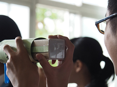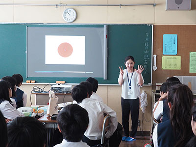 | Event Outline | The Olympus Wakuwaku Project, a volunteer circle mainly consisted of the Olympus group employees, held the 61st Wakuwaku Science Class. At the Hachioji City Ishikawa Junior High School, 19 volunteer staff who were sharing their roles gave lectures to 195 students in total. The three programs "Kaleidoscope work," "Camera Obscula" and "Light Illusion" were conducted. The students learned and enjoyed science, and they asked questions in a cheerful voice. |