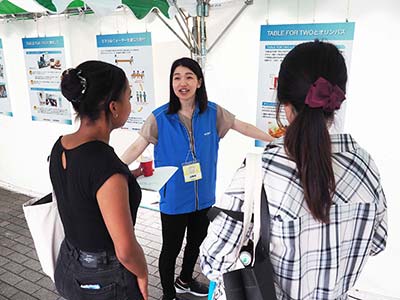| Event Outline | Olympus set up a corporate booth at Global Festa Japan 2019, with volunteers from Olympus on hand to explain Olympus' corporate citizenship programs. Organized by Japan's Ministry of Foreign Affairs, JICA and others, Global Festa Japan is the largest annual event focusing on international cooperation, the aim being to raise the general public's interest in international cooperation. The Olympus booth had a presentation on a school lunch program for children in developing countries that is supported by Olympus and run by TABLE FOR TWO International (TFT), a non-profit organization. The TFT program asks participating organizations, such as Olympus, to offer TFT-approved "healthier meal options" and mineral water in their staff cafeterias, with part of the proceeds from sales of these items being donated to TFT, which in turn buys and delivers school meals to feed needy children. The approximately 400 people who visited Olympus booth got to learn about this program. |