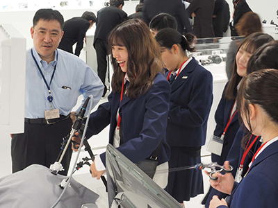 | Event Outline | Students studying chemical and biological engineering at the National Institute of Technology, Ube College made their third visit in 2019 to the Olympus Museum in order to learn more about Olympus, with a particular focus on its endoscopes. They were lectured about Olympus' milestones in scientific, imaging and medical endeavors and technological evolution and familiarized themselves with the company's products in a fun way by operating select devices hands-on. The student's post-visit comments included: "A great opportunity to actually touch an endoscope, something rarely seen outside of TV dramas or hospitals" and, "My perception of endoscopes, which I thought were devices based on highly complex technologies, was transformed after I learned that optical fibers and other everyday components are used in it. I no longer see it as a tool removed from the everyday world." |