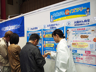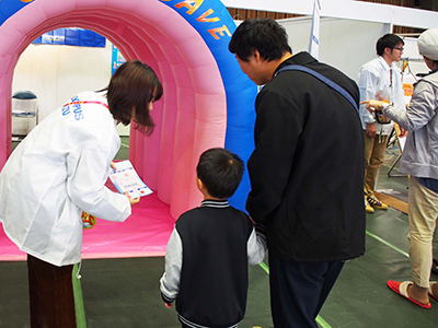 | Event Outline | The Aizu-Brand Monozukuri Fair is an event that showcases the arts and craftsmanship of local masters and skilled craftsmen, as well as the products and activities of local companies engaged in manufacturing (monozukuri). Another important aim of this event is to encourage local children, who are the future of the community, to experience and practice the basics of the arts of monozukuri. Held in Aizu-Wakamatsu, the two-day event was attended by about 16,900 people this year. The Olympus booth attracted many visitors, both young and old, who enjoyed the "Colon Cave", a gigantic model of a colon made of balloons, which was on display to help visitors learn about diseases affecting the large intestine, as well as a colon cancer quiz rally, in which visitors searched for answers by checking different parts of the booth. Together with an activity that allowed visitors to operate endoscopes, the activities offered by our booth helped raise public awareness about colon cancer. |