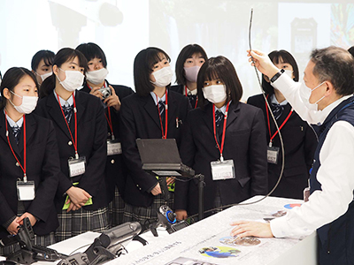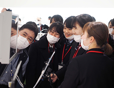| Event Outline | Second-year students of the nursing program at Mihagino Girls' High School in Fukuoka visited the Olympus Museum to "better understand Olympus, in particular its medical business." This was the fourth such visit to the Museum. The students were divided into four groups and given a tour of the Museum, learning about the history of Olympus' scientific, imaging and medical businesses and technological evolution, and also got a chance to operate some products themselves. Their post-visit comments included the following: "So many different endoscopes were on display, each one having its own unique characteristics, and I found them all very interesting. I was particularly impressed by the vivid images produced by these endoscopes." "I learned a great deal by operating an endoscope myself." "All the experience we gained at the Museum will be useful for nursing majors like us as we decide our future career paths." |