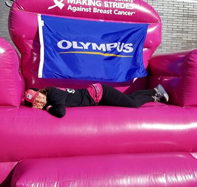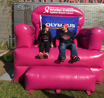 | Event Outline | Olympus Corporation of the Americas sponsored the Big Pink Chair during the American Cancer Society's Making Strides Against Breast Cancer Lehigh Valley event. The event isn't just a walk. It's a movement to end breast cancer. Thousands of participants work join forces to see a world where this disease doesn't exist. Help save lives from breast cancer - and work toward a future without it. |
