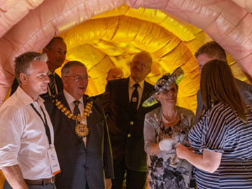 | Event Outline | To help mark 50 years since the start of Region UI (the U.K. & Ireland), Councillors, Head Teachers and representatives from local charities were invited for a celebration event in Southend. The event showcased the contribution we've made to our community over the past five decades. Visitors were invited to take part in three discovery sessions to learn more about Olympus' products, and a 20m inflatable colon was also on display with representatives from Bowel Cancer UK available, to highlight the various stages of colon disease. The inflatable colon was also available for employees to visit during the day where over 200 took the time to learn more about colon disease and the importance of recognising symptoms and early diagnosis. |