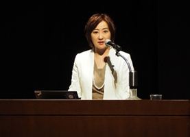 Miki Haramoto speaking about colorectal cancer