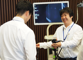 | Event Outline | Olympus hosted a seminar on colorectal cancer at Olympus Hall in Hachioji, Tokyo in an effort to familiarize its business partners and suppliers with the importance of the early detection and treatment of colorectal cancer. Miki Haramoto, a news reporter who was diagnosed with an early stage of colon cancer, took the podium and urged the audience to take the first-line colorectal cancer screening test known as the fecal occult blood test, which detects blood in stool, stressing that it is an easy and inexpensive screening method, and that it is said that over 95 percent of colorectal cancer cases can be cured if detected and treated early. There was also a display of medical endoscopes used to examine and treat cancer and other diseases at the entrance of the Hall. Olympus will continue to contribute to better health for all through its cancer awareness activities, with the goal of making people's lives healthier, safer and more fulfilling. |
