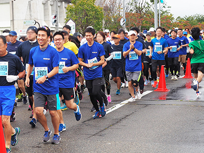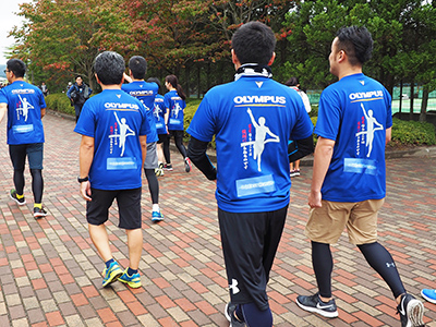 | Event Outline | Aizu Olympus is a sponsor of the Tsuruga-jo Castle Half Marathon, which is held every year in the city of Aizuwakamatsu. This year's event attracted around 9,000 participants from all walks of life, including a significant number of Aizu Olympus employees. In total, around 60 Aizu Olympus employees, including company president Hitoshi Yamazaki, chose to participate in the 2019 marathon. The Aizu Olympus participants all wore blue T-shirts with company-made stickers bearing the Olympus cancer awareness slogan "Shine a Light on Cancer" on the back, helping them to raise awareness about cancer among the other marathon participants. All of the Aizu Olympus runners managed to complete either a half marathon or full ten-kilometer course. The Aizu Olympus taiko (Japanese drum) ensemble was also at the marathon, and inspired the runners with an energetic Japanese drum rhythm. |