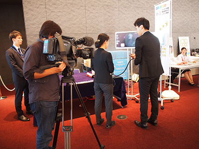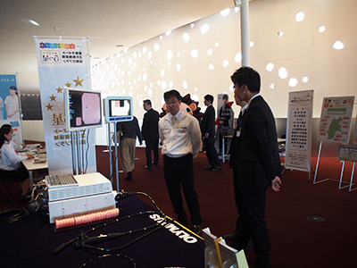 | Event Outline | On October 16, the Nagano Prefectural Health and Welfare Department held a seminar in Nagano Prefecture entitled "Supporting Work-Life Balance for Cancer Patients". As part of its support for this event, Olympus' Matsumoto Sales Office ran a booth exhibit and distributed cancer awareness booklets. The Matsumoto Sales Office is working with the Nagano Prefectural Government to combat cancer under the "Nagano Business Partnership for Cancer Action (known as the "Cancer Action Partnership"). On the day of the seminar, the Olympus exhibit featured a gastrointestinal endoscope system equipped with AI-based endoscopic image diagnosis software. Seminar attendees and prefectural government officials showed keen interest in this system. |