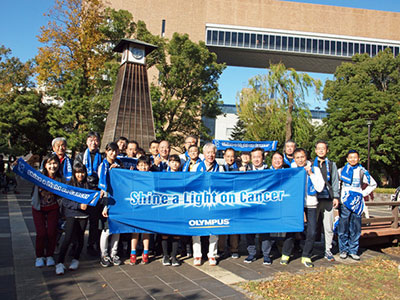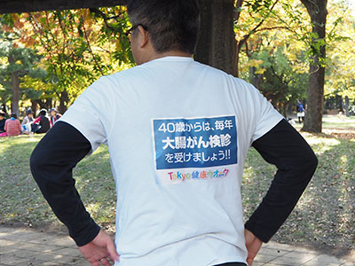 | Event Outline | Sponsored by Tokyo Metropolitan Government and NPO BRAVE CIRCLE Committee, the TOKYO HEALTH WALK is an opportunity for people to learn about colorectal cancer while enjoying a walk along specified routes in Tokyo. Based on the belief that regular exercise can help prevent colorectal cancer, the event uses walking as an opportunity to communicate the importance of colorectal cancer screening to the residents of Tokyo. Olympus supports this initiative every year. About 1,800 participants from the general public signed up for this year's event, and gained a greater understanding of the importance of cancer screening through a series of quizzes and discussions. Participants over the age of 40 also received a free colorectal cancer screening (fecal occult blood test) if they so wished. Over 50 Olympus employees participated in this year's event, either as volunteers or general participants. The volunteers donned special race bibs calling for colorectal cancer screening before joining the general public on the walk. |