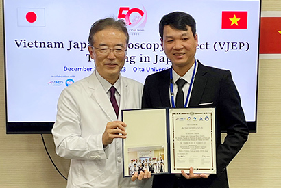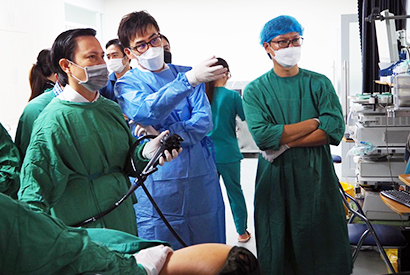 In Vietnam, a country that has enjoyed tremendous economic growth, the number of cancer patients is increasing year on year. While the demand for endoscopy, which are essential for early diagnosis and treatment of stomach cancer and colorectal cancer are set to increase, a shortfall in the physicians and medical personnel that possess the necessary knowledge and skills to carry out this endoscopy has become a serious challenge. That is why Olympus, based on collaborative efforts involving industry, government, and academia, has on multiple occasions implemented training projects for local physicians led by Japanese physicians. This training has included intensive initiatives such as holding classroom-based lectures and practical training in manual techniques in several Vietnamese cities and in Japan, in addition to online lectures. Furthermore, while also training physicians, Olympus has drawn on the knowledge of Japanese academic societies and medical professionals to assist in the creation of diagnosis guidelines in line with the state of healthcare in Vietnam and conducted a demonstration project on the utility of using an endoscopic diagnosis support system* equipped with the latest AI technology.
