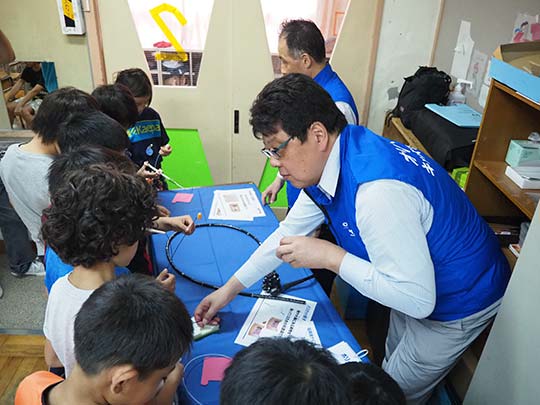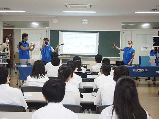 In 1950, Olympus succeeded in developing the world's first gastroscope. Utilizing the unique strengths of the company that leads the global endoscope market with technology originating in Japan, Olympus offers endoscope classes to help children expand their learning opportunities.