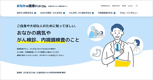Olympus operates the website "Onaka-Kenko.com" under the supervision of medical experts to provide as many people as possible information on various diseases of the digestive tract, cancer screening, endoscopic examinations and treatment. It supports the maintenance of people’s health by continuing to provide proper information.