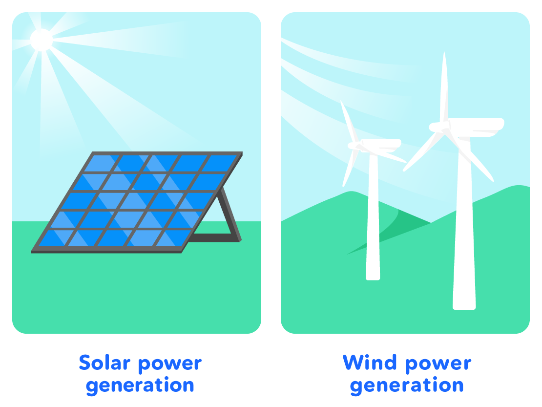 "Natural energy" has been gaining attention these days as a replacement for the electric power generated by burning oil, coal and natural gas. We can reduce the amount of carbon dioxide emissions by incorporating energy that uses the power of nature, such as "solar power generation" using the sunlight and "wind power generation" using the power of the wind. These natural forces can be used over and over again and are referred to as "renewable energy".