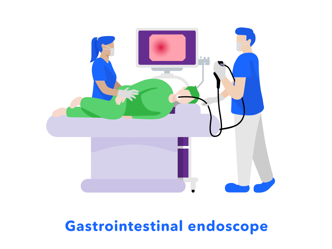 There are different types of medical endoscopes. For example, there are "gastrointestinal endoscopes" used to examine and treat the stomach through the mouth or nose, and "colonoscopes" which are used to examine and treat the colon through the anus.