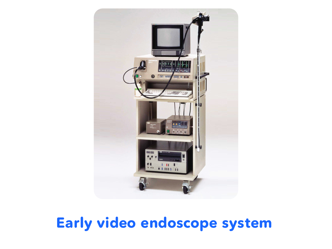 In the 1980s, "videoscopes" emerged, with video cameras with ultra-small parts called charge-coupled devices (CCD) incorporated into scopes. This videoscope is the system used today for endoscopes.
