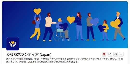 At Olympus, we have a community site called “Lalala Volunteer" where employees can communicate about their volunteer activities. Nearly 800 employees participate in the community, sharing their volunteer experiences, thoughts, and opinions. It has become one of the opportunities for employees to interact with each other, transcending organizational and functional boundaries.