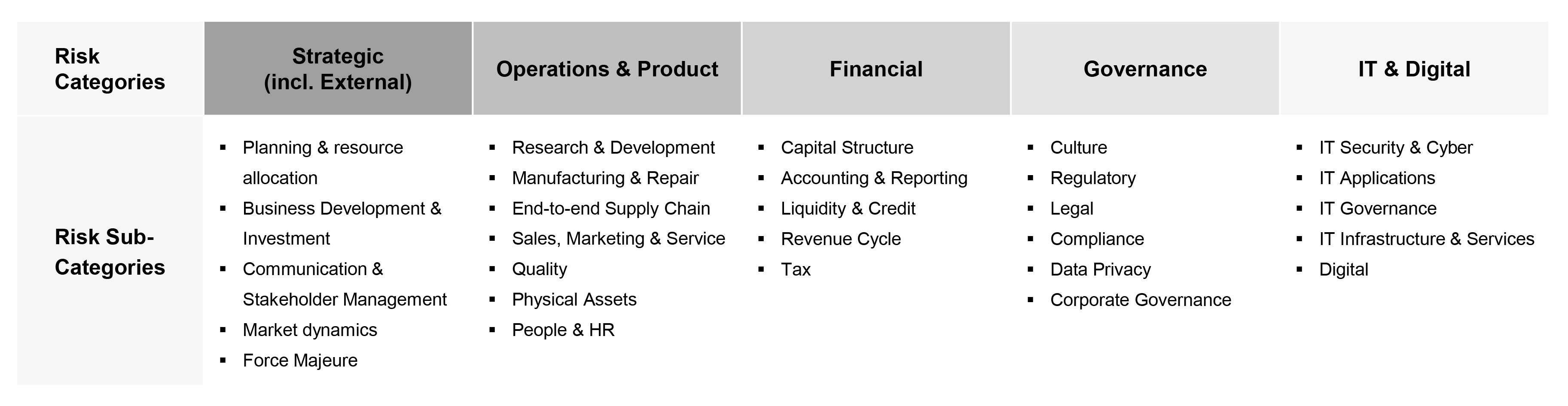The “IT & Digital” Risk Category encompasses IT Security & Cyber, IT Applications, IT Governance, IT Infrastructure & Services, and Digital.