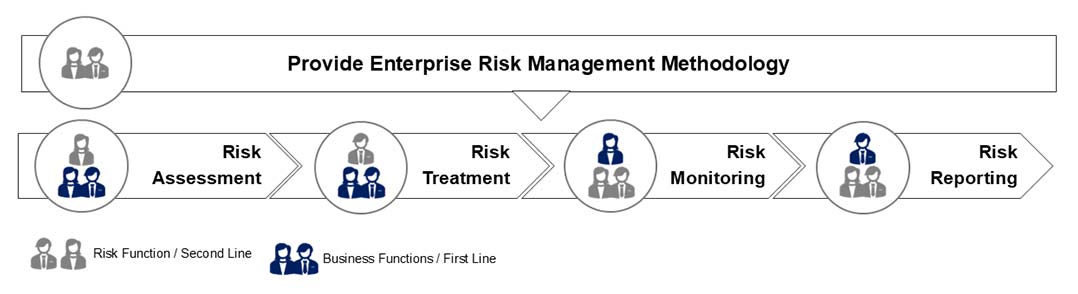 The Enterprise Risk Management Process is based on the strong collaboration between the Risk & Controls Function and the Divisions/Business Functions following the principle of the Three Lines Model. Risk & Controls is responsible for providing, maintaining and developing Enterprise Risk Management Methodology and operational guidance.