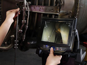 Industrial endoscopes are a form of non-contact inspection system suitable for use in confined and hard-to-access spaces that are not open to direct visual inspection, such as the interior of aircraft engines or piping at industrial plants. Their main uses include routine maintenance and inspecting components for quality. Olympus has marketed a variety of models under its IPLEX series of industrial videoscopes that satisfy diverse requirements through high image quality and excellent usability.