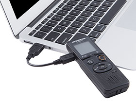 Bundled micro USB cable can be used to easily connect to a computer. Using a computer, you can quickly manage files by checking the folders on the recorder according to scene.