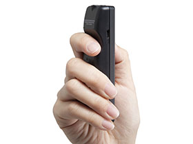 Ergonomic design is tailored for a secure grip and easy controls. Body of recorder is shaped so that your forefinger perfectly fits the back of the recorder when held, and all buttons are located on the front of the device for easy operation with your thumb. Frequently used buttons are made larger for easier pressing.