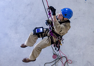 - Attaches to a user's leg or harness: rope access technicians can secure the instrument for hands-free operation