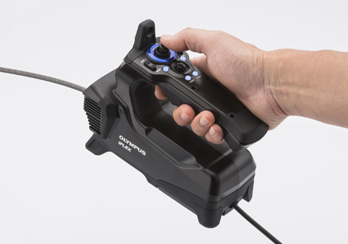 The weight balance of the controller has been optimized to minimize operator fatigue, resulting in a design that feels light but secure in the user’s hand. The new model also features fully electrical tip articulation of the insertion tube. The light-touch joystick operation enabling fine adjustments of the scope’s position helps ensure that the scope goes where the user wants it to. Being lighter to operate than previous models also puts less stress on the user’s fingers, helping to reduce fatigue when conducting inspections over an extended period. Another new function is the ability to operate the tip articulation using the touch panel. In situations such as on a production line, where room to move is limited, this provides intuitive operation directly on the monitor, without needing to take hold of the controller.