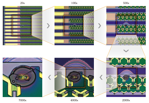 A comparison of wafer images at 20–7,000X.