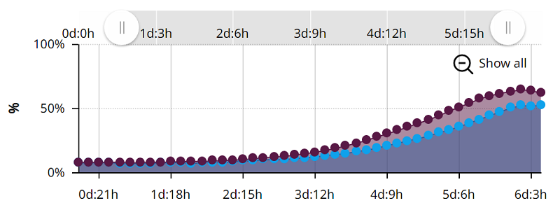 Comparison of confluency Purple: vessel #1 , Blue: vessel #2