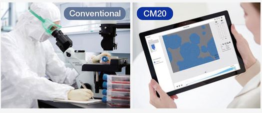 The OLYMPUS Provi CM20 incubation monitoring system* provides quantitative data about the health of cell cultures while they are in the incubator. The system periodically scans the cultures, counts the number of cells, determines confluency and wirelessly communicates the data to a tablet or PC. By using the CM20 system, you can acquire data that will help improve the reproducibility and stability of your cell culture process.