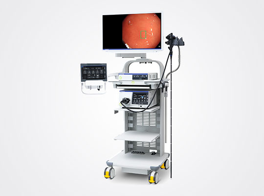 This endoscope system provides new solutions with the imaging technologies such as EDOF (real-time imaging with a wide focal range), TXI (highlights changes in color and structure), and RDI (creates contrast in deep tissue) as well as a lesion detection function using AI technology*, contributing to early detection and treatment of cancer and other gastrointestinal diseases and the quality of minimally invasive treatment worldwide.