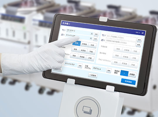 This is an endoscope cleaning management system that helps shorten the work time of medical personnel. It improves the efficiency of reprocessing operations through easy data entry with a tablet and enables centralized information management of endoscopes from multiple manufacturers.
