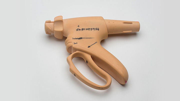 We initially tried attaching a rubber material on the surface of the handle, but during the evaluation test, we found out that when surgical gloves became wet, the handle became slippery. Through careful trial and error, we eventually arrived at a perfect solution: small raised bumps to create a texturized, non-slip grip on a surface that was still smooth enough to prevent tissue adhesion.