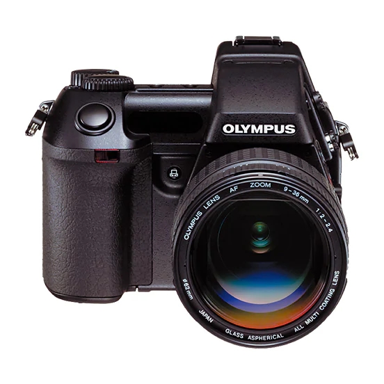 Launched in 2000, the E-10 was a real all-in-one digital single-lens reflex camera specified for professional use. It had a 4-megapixel CCD and large-aperture 4x zoom lens. It subsequently evolved into the E-20, which featured a 5-megapixel CCD and the world's first hybrid scanning system (switchable between interlaced and progressive scanning).