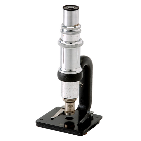 The shared viewing microscope, launched in 1929, was used by students taking lab classes in university science departments and medical schools. Students took turns observing a specimen by handing the microscope from one person to another. The microscope did not come with a mirror; therefore, users had to orient the microscope toward a light source.