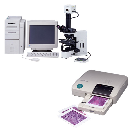 Olympus launched its long-awaited DP10 Microscope Digital Camera in 1998. The camera produces 1.41 megapixel images, uses 8MB SmartMedia, and features a 1.8-inch LC monitor. Photographs taken can be immediately printed on the CAMEDIA P-300 Digital Color Printer. Olympus has achieved an easy to use and convenient system that allowed researchers to obtain a print out of their observations very quickly.