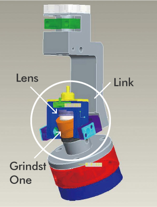 The gripping device developed in this way was called a "link". Throughout repeated processing experiments, the opinions of the technicians were incorporated in order to continuously improve the device until it was ready for practical application. By combining the link with the grindstone, it was possible to achieve the demanded level of quality, and Olympus succeeded in quantifying processing conditions. The link was then repeatedly improved as a unique Olympus technology that has now become the standard of lens gripping devices.